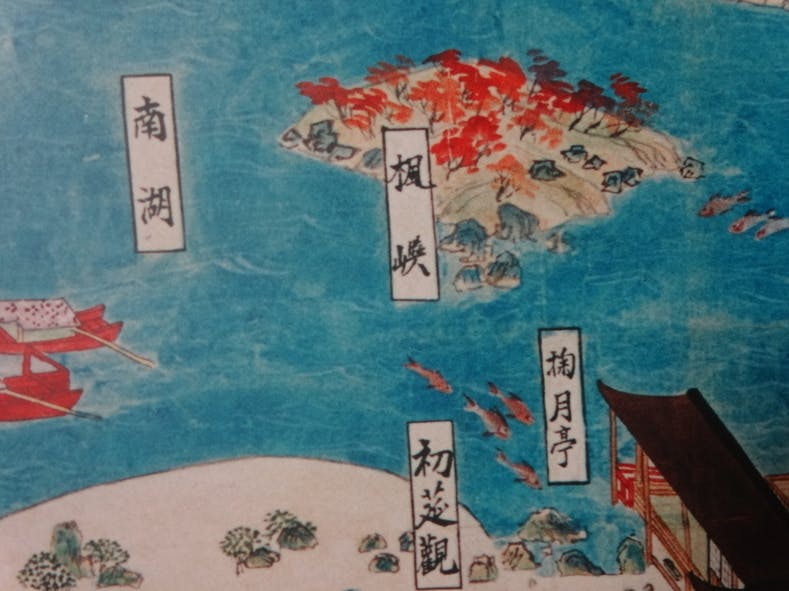 栗林公園でも、江戸時代の古図に錦鯉が泳ぐ様子が描かれています。