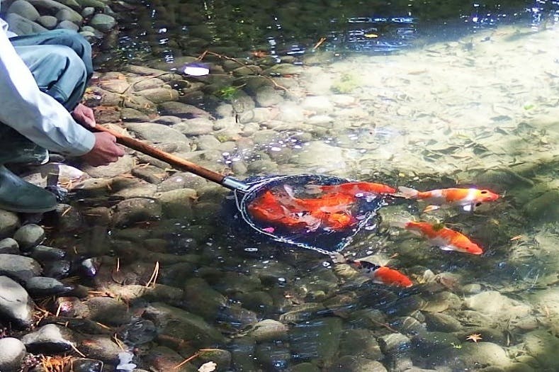 今回のプロジェクトでは、40cm以上に育った2~3歳程度の若い錦鯉を養魚店から直接購入し、池に放流するという試みにチャレンジします。