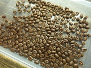 石鹸を作る際にふと思いついたのが、蒸留水の代わりに、珈琲エキスを入れてみたらどうだろうということでした。というのも、家業である珈琲豆販売店「大和屋」では、焙煎工場からの配送の時などに出る傷ついた珈琲豆は、店頭に出す前に1粒ずつチェックするのですが、その際、大量の傷豆が発生します。