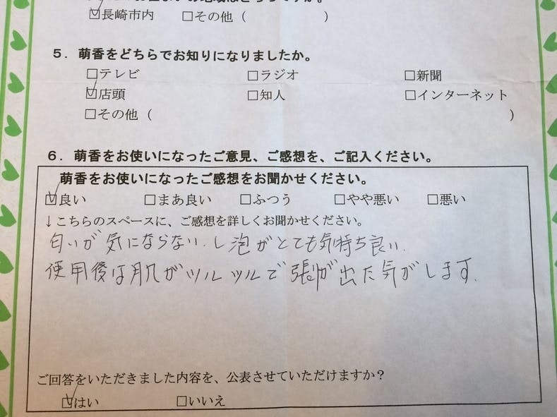 こうして、自分の経験をもとに、石鹸を使用されたお客様の反応を見てみると、大変に喜ばれていることがわかりました。年齢や性別にかかわらず、肌トラブルや、体臭の悩み、アンチエイジング対策などなど。