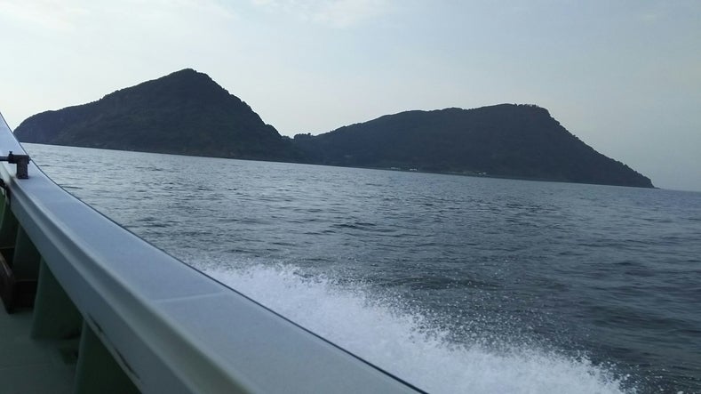 大島は日南市の沖合2kmに位置します。記録によると最も多い時には400名ほどが生活していたそうです。ピークは昭和35年ごろの350名ほどで終わり、その後は過疎化が進みました。そして昨年、最後1人の島民が引っ越したため無人島となりました。