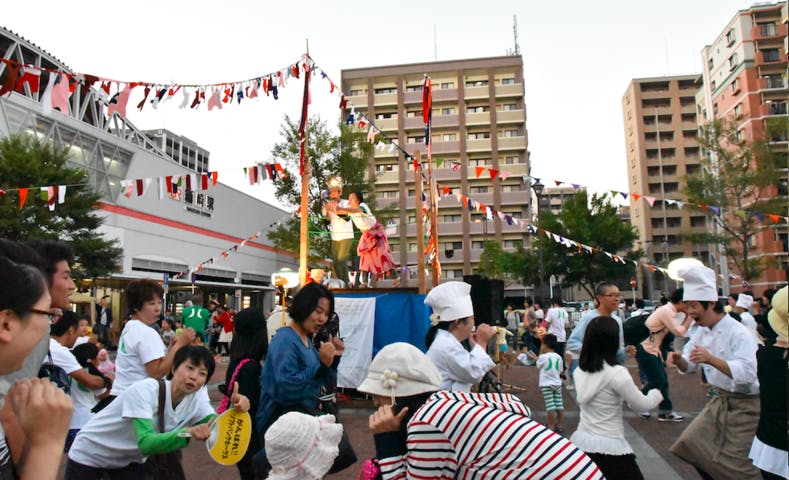 ■概 要:コンドルズの近藤良平氏による筥崎オリジナルのダンス。誰でも踊れる新しい盆踊りです。今年はキッチン道具をつかったバンド「Ritmico」とコラボ!