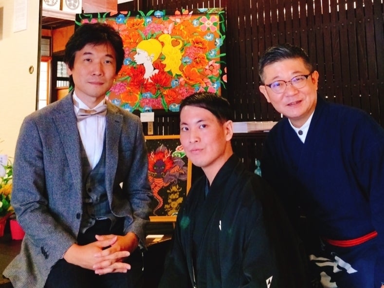 この作品の作者、濱谷さんは築250年の茶吉庵に呼ばれてそこに立っているような、どこかノスタルジックな雰囲気で蝶ネクタイとベストがとても似合う人。