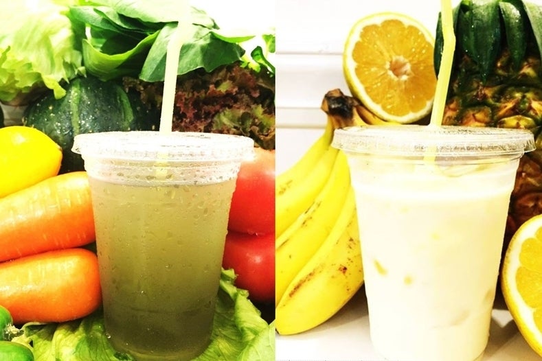 ジュースバーでは、沖縄の野菜と果物を使ったジュースやスムージー、