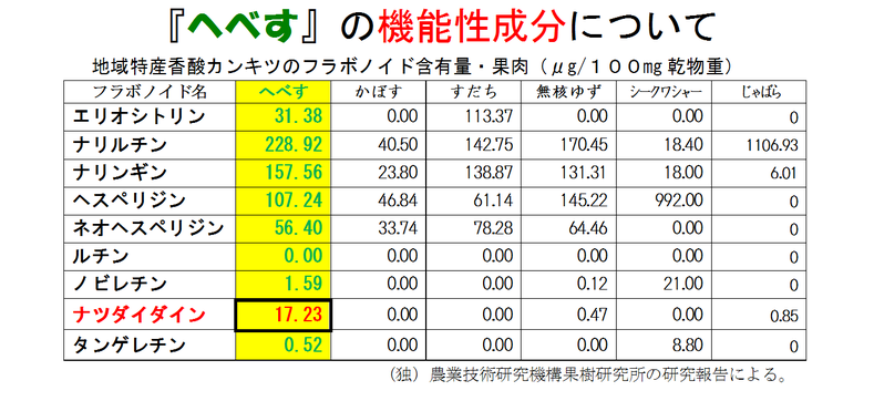 へべすは、香酸カンキツ特有の機能性成分を多く含んでいることがわかっています。