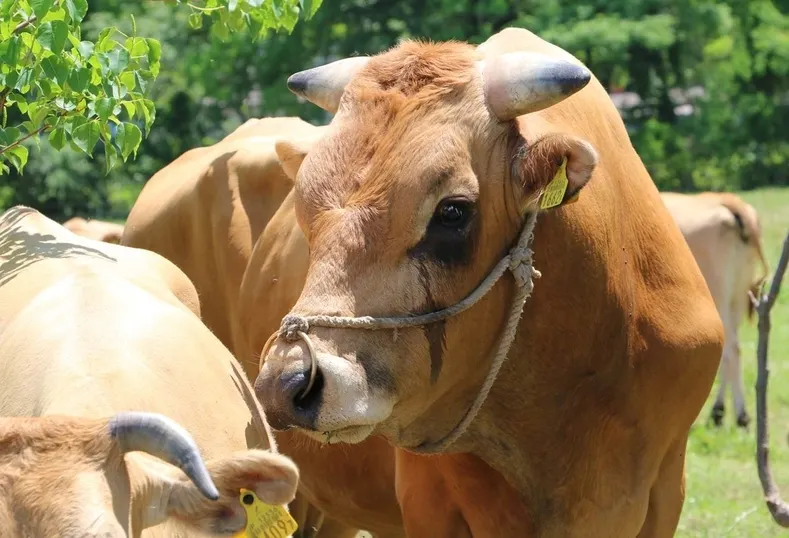 土佐あかうしが愛されるのはなんと言ってもその可愛らしさ!赤褐色の毛色をしており、鼻やしっぽ、ひづめが黒いのが特徴です。目の周りの毛も黒く、アイシャドウのようになっているのも土佐あかうしの特徴ですよ。