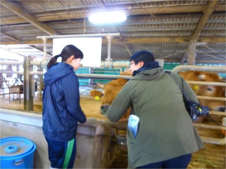農場や牛舎もご案内し実際に牛とも触れ合っていただきました。