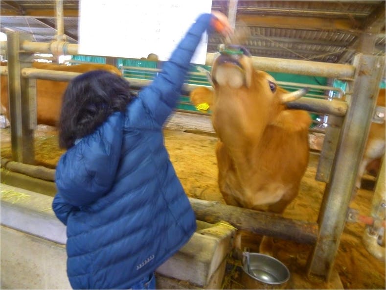 今日は松川先生の娘さんが畜舎管理にきて、牛のえさやりやブラッシングを手伝ってくれました。