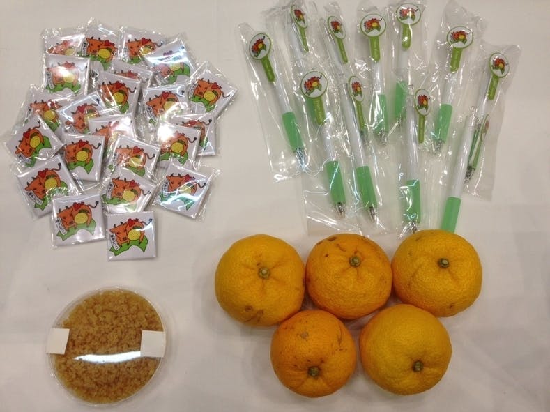 また、アンケートのお礼として柚子だっこグッズの配布も行いました。