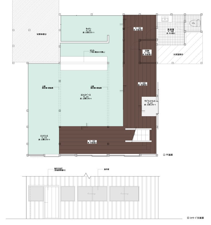 概観に大きな変化はありませんが、窓を大きくしたり、2Fの雨戸をしまう戸袋を全体の雰囲気に合わせた廃材でカバーをしようと考えています。