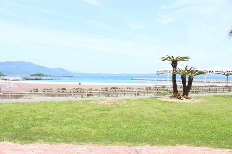 目の前には、公園があり2Fからは海を見渡すことが出来ます。商店街の駐車場からも徒歩30秒で、商店街からは1分もかからない場所にあるため、町へお買い物に来たついでに、一休みになどに立ち寄ってもらえそうです。