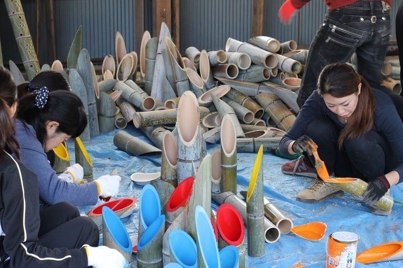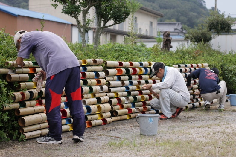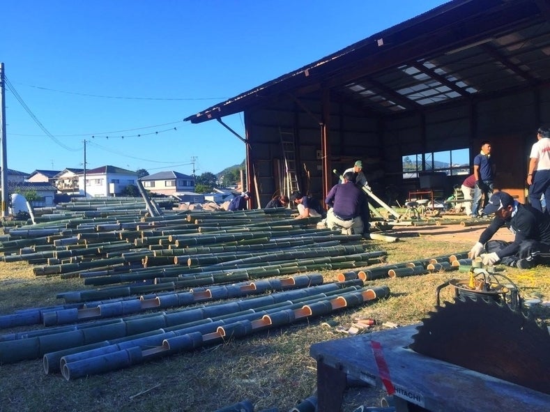 夏から準備をはじめ、竹を150本ほど伐採し、約600本を小切りに。
