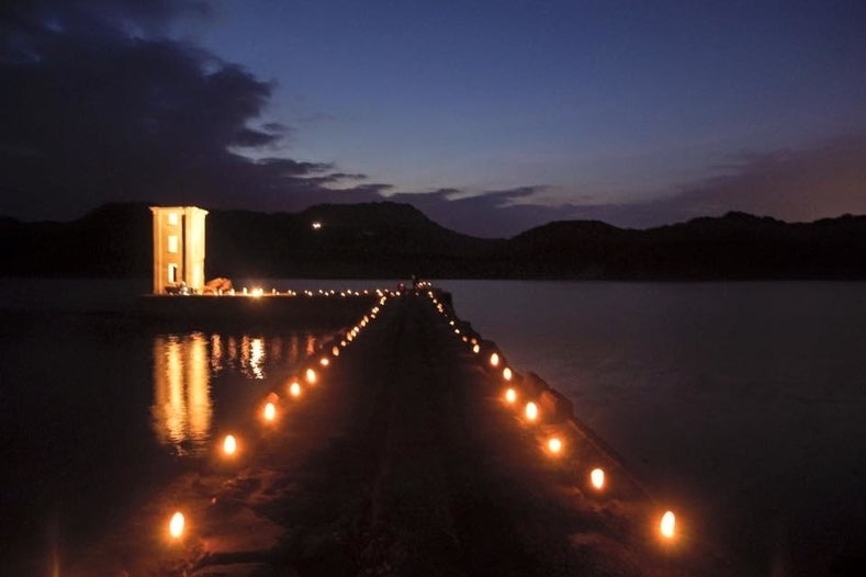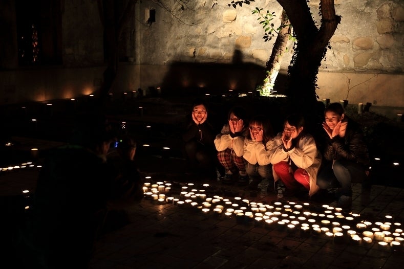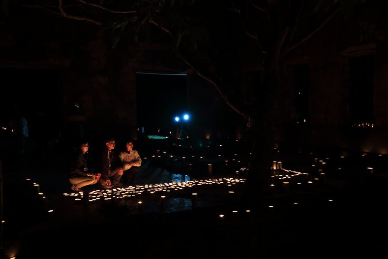 陽が暮れ始めた夕方。私たちの目の前には約3,000個の竹灯籠の明かりが広がっていました。