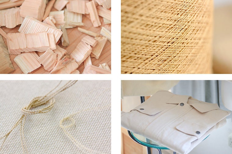 麻のような風合いと「木」をストレートに感じさせるマテリアルは、環境にも人にも優しい、優れた効果を持った新しい素材です。