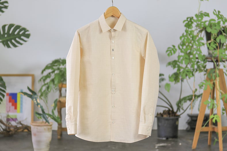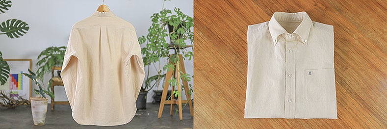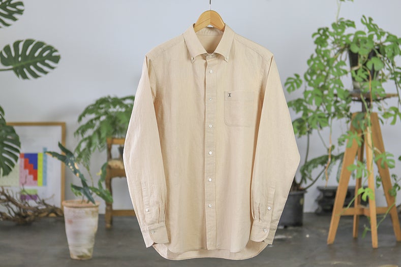 飽きのこないベーシックなメンズシャツ。張りコシが特徴の木糸が、洗いざらしでもラフにデイリーなシャツとしての着こなしが出来るシャツ。