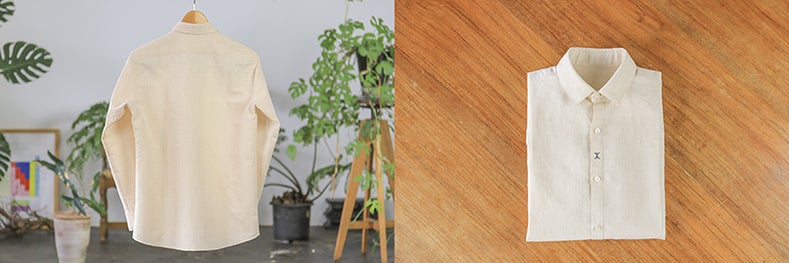 ②木糸からできた素材は独特のしなやかさとシャリ感がありますが、麻ほどシワにならないのが特徴。