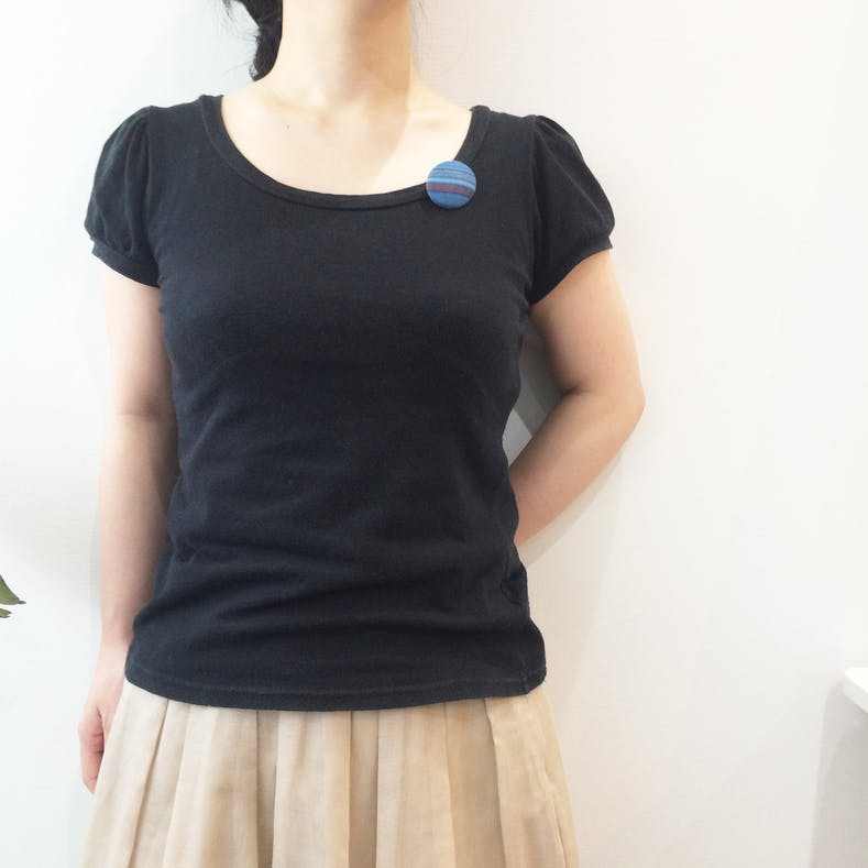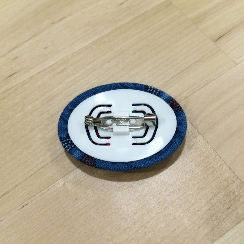 島原木綿の生地ブローチは丸と楕円の2種類ご用意しています。