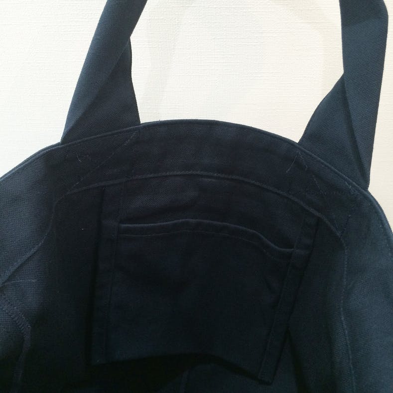 表部分と中にポケット付きで、底部分は楕円のマチ付き(最大マチ幅約11cm)ですのでたっぷり入ります。