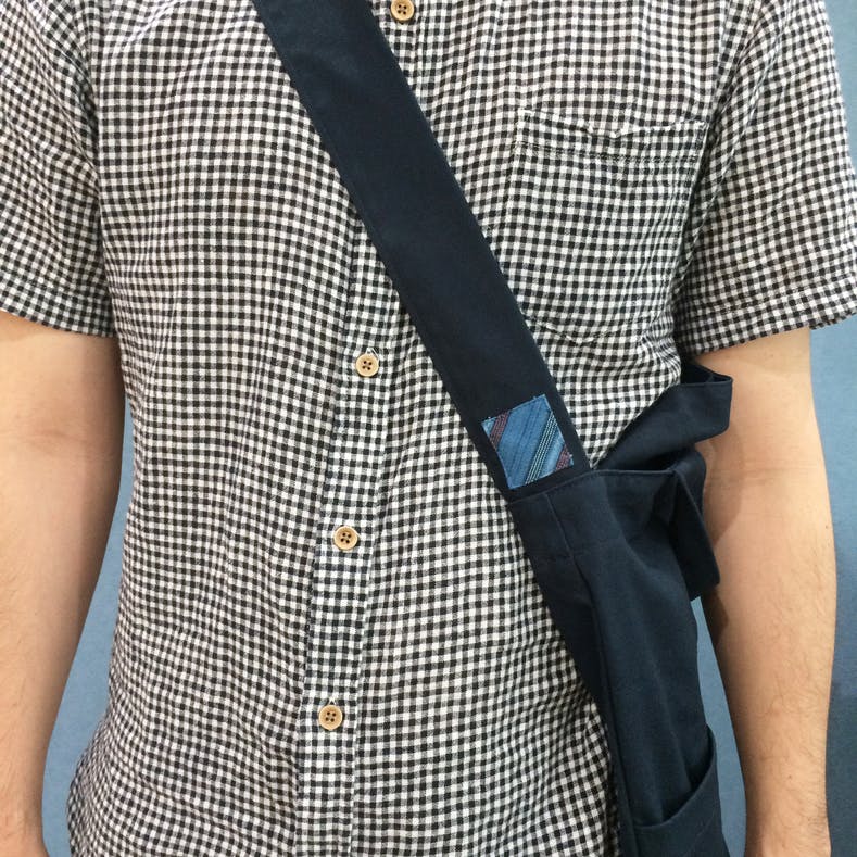 ショルダーの片側部分の根元には島原木綿の正方形の生地が縫い付けられています。