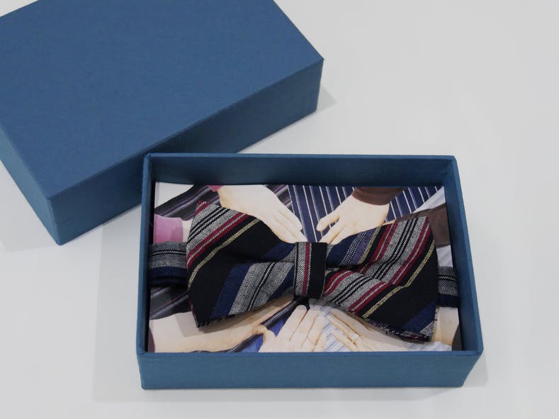 さらには、オシャレで目を引きやすく、意外性も持ち合わせている蝶ネクタイは、島原木綿の文化の新しいカタチとして最適と考えました。