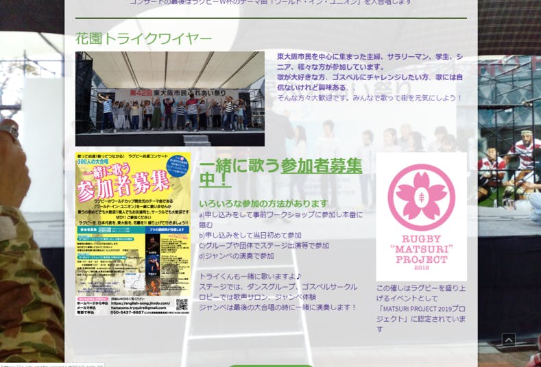 日本初のラグビー応援ゴスペルの歌声を聞いて下さい。