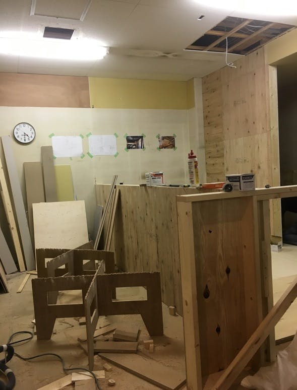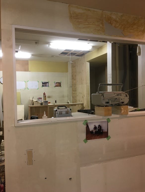 店舗kirakiraセブンの作業風景を撮影してきました。カウンターやストックルーム、壁が徐々に姿を現してきました。