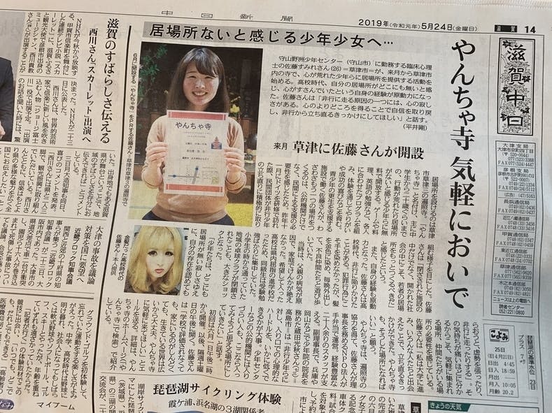 中日新聞2019年5月24日朝刊 に取り上げていただきました。