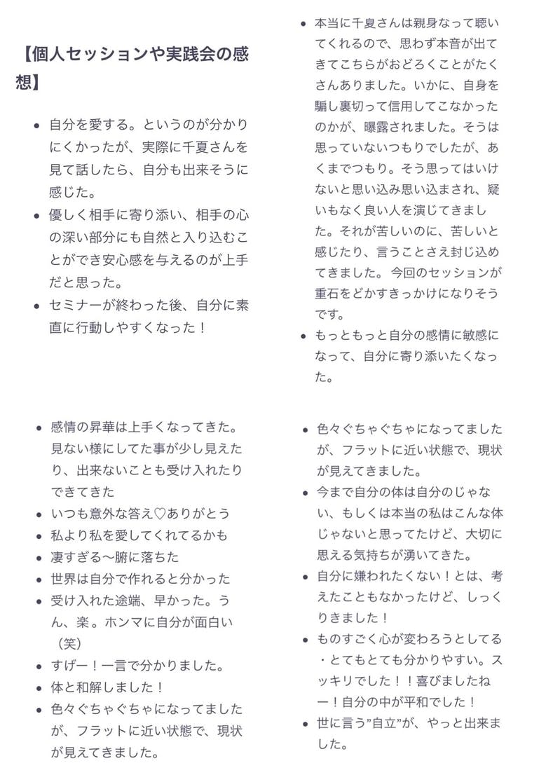 経験によるしなやかさ、大丈夫だという実績、今の喜びを拾う感性、結果の手前にある豊かさの活用、など、安心を積んでいく生き方を多くの女性にシェアしたいと思います。