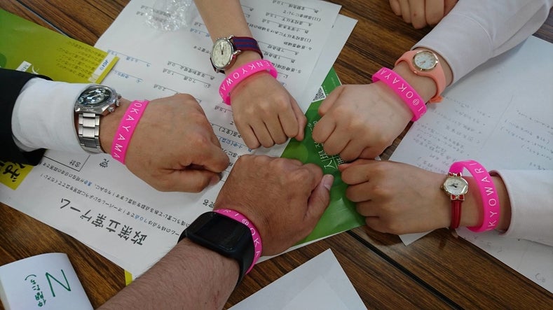 前回センキョ割@岡山が行った宣言写真プロジェクトとは、『センキョ割@岡山』のメンバーが学校・商店街・学生団体やNPOのイベントに行き、「選挙に行きますか?」と質問し、「行きます!」と宣言した方に選挙まで後何日かというPRをして頂くというものです。もちろん、投票に行かなくても「センキョについて考えてみるよ!」「センキョ割@岡山を応援するよ」という方にもラバーバンドをつけていただいて、今年の7月10日に行われた第24回参議院議員選挙までの日数のカウントダウン用紙と共に、写真を撮らせていただくプロジェクトです。