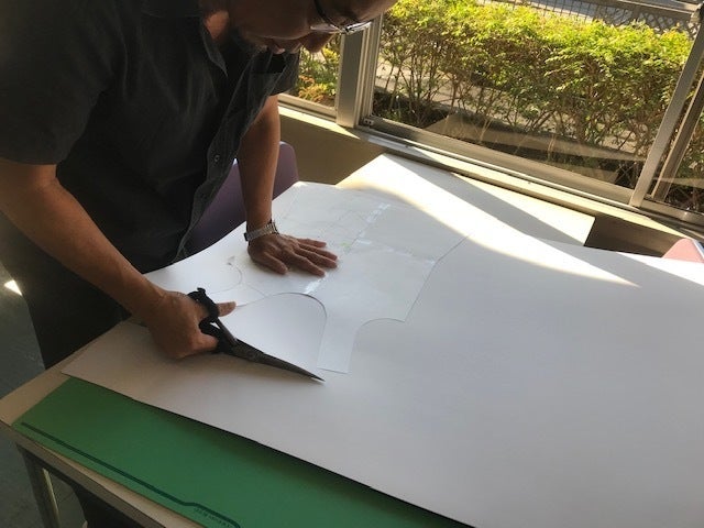 パターンが描かれた用紙を厚紙に貼りつけるという作業を本日は行いました。