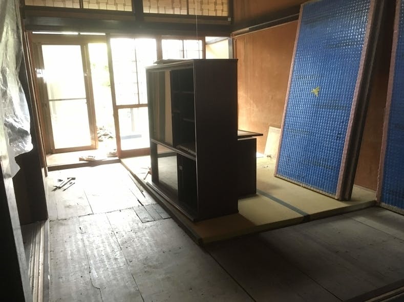 この建物には、客席スペースの奥に6畳の和室があります。しかし傷みがひどかったため、当初はそのまま物置部屋にする予定でした。