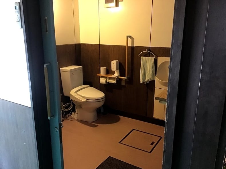 また、食堂の入り口や、客席も広いため、ベビーカーや車椅子が入るスペースも充分にあり、以前はデイサービスであった名残で、バリアフリーの広いトイレもあります。