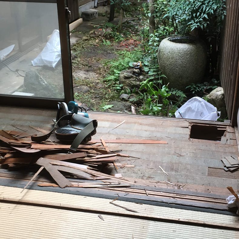 ▲まずはできるところから、ボロボロになっていた縁側の床をはがしました