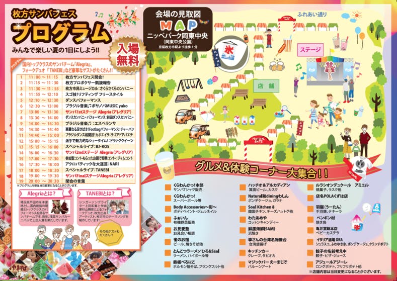 サンバフェスを通じて枚方を最大級に盛り上げる!を目的に枚方の飲食店や企業から出店を募り、約30店舗展開。
