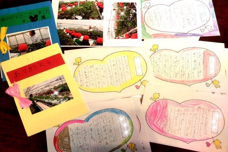 ▽地元の小学校から苺狩り体験。いただいたお手紙からも元気をもらっています!!