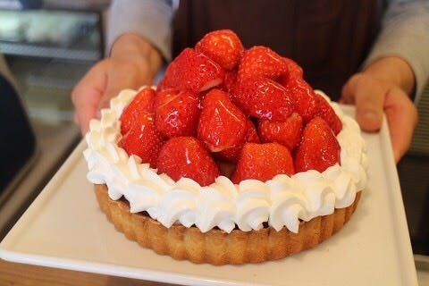 ストロベリーフィールドきたさかの苺をたくさんのせて作っていただいている苺タルト