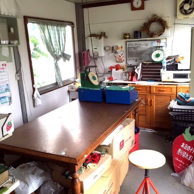 苺狩りもおかげさまで、ひっきりなしにお問合せをいただくんですけど、来られたお客様をお迎えする場所と、摘み終わられたお客様が戻ってこられる場所が、今ある作業場しかなくて、狭くてぐちゃぐちゃになり申し訳なく思っています。苺狩りを終わられたお客様にも、ちょっとお茶飲んで、一服して帰っていただけるような場所を作りたいなと思っています。