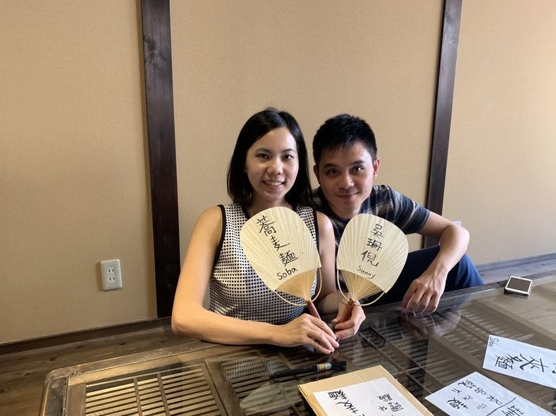 ・習字(お土産のうちわや色紙に筆ペンでお好きな文字を書いていただきます。)