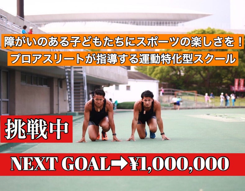 2019/08/15 15:48ご支援いただいたみなさまへ お世話になっております。伊佐と檀野です! クラウドファンディングが終わり、プロジェクトを達成することができました!この1ヶ月間、皆さんの応援のおかげで走りきることができました!本当にありがとうございます! 皆さんのご協力のおかげで7/1〜7/31の期間で79人の方が支援してくださり、68万2500円が集まりました。 そして、施設の名前、場所が決まりました。児童発達支援・放課後等デイサービス施設あ〜すり〜と 地球を、人生を楽しみ尽くすアスリートになってほしい。という思いで名前をつけました。 場所は大阪市の長居駅が最寄りで、長居公園の目の前です。運動指導には本当にぴったりな物件を確保することができました! 9月1日のオープンに向けて設備やコンテンツを整え子どもたちやご家族の方に喜んでもらえるように全力で頑張ります。 そこからが、やっとスタートです。オープン後は、うまくいくことだけではなく、大きな壁に阻まれ、悩むことも必ずあると思います。 その時は、皆さんからいただいた応援の言葉を胸に、大好きな仲間と、子どもたちの笑顔を増やすことができるようにありとあらゆる手段を使って壁を乗り越えて行きたいと思います。 障がいの有る無しに関わらず、一人でも多くの子どもがスポーツを愛してくれる世界。アスリートが心いくまで自分自身の夢に向かって挑戦できる世界。そんな世界を作る一助になれるように、 目の前のやるべきことにフルパワーを注いで行きたいと思います。 僕たちを育ててくれたスポーツというものに、少しでも恩返しがしたい。 この思いを胸に、みなさんと一緒にこれからも前に進んで行こうと思います。この度はご支援いただき本当にありがとうございました!僕たち自身も子どもたちと共に成長していきたいと思っています。今後ともどうぞよろしくお願いいたします! もっと見る