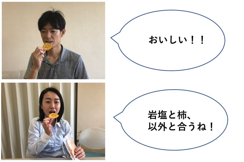 どうすれば柿の甘味を上手く引き出し、美味しい柿チップスができるのか。少し塩味を足したり、厚みを変えて食感を工夫したりと試行錯誤を繰り返しました。