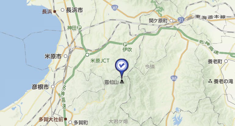 鈴鹿山脈の最北に位置し滋賀県米原市、多賀町に接する標高1094mの霊仙山。