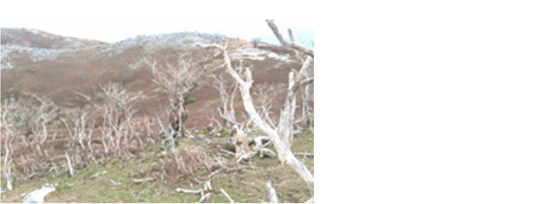 近年、鹿の食害で7合目から上の草木は殆どない状態です。