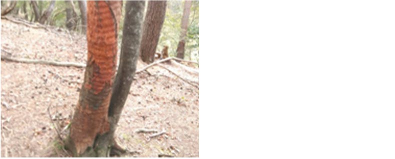 (鹿に樹皮を食われた木、回復は不可能です。)