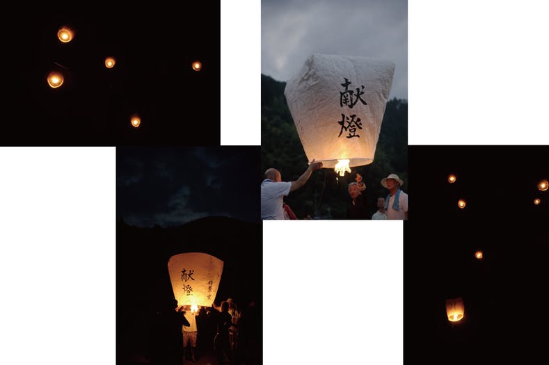 年に1回お盆にだけ開催されるこのお祭りは、亡くなられた故人・ご先祖を偲ぶお祭りであるとともに、魂の灯火にも見える、天高く舞い上がったその燈籠を見た参加者の方々からは