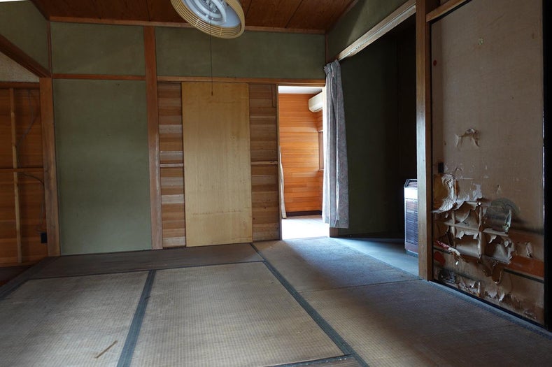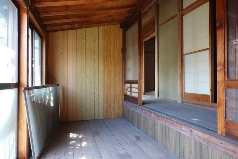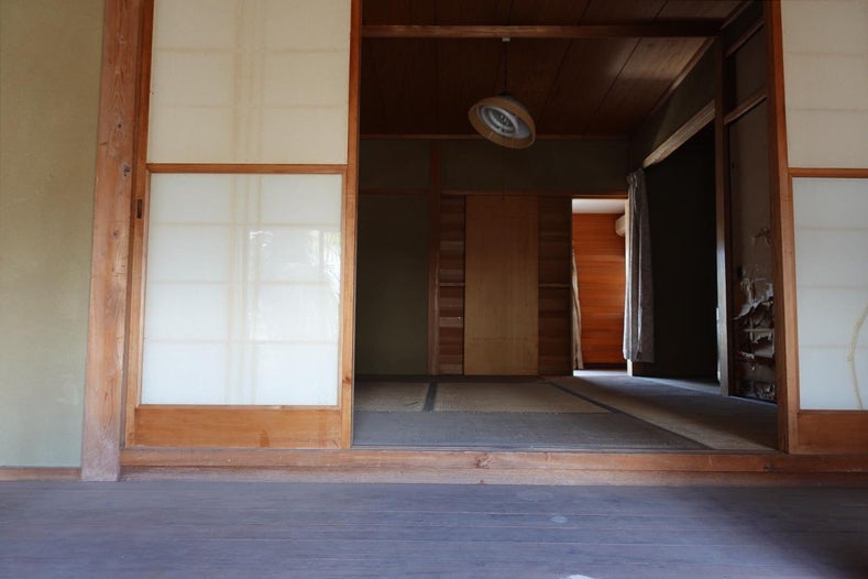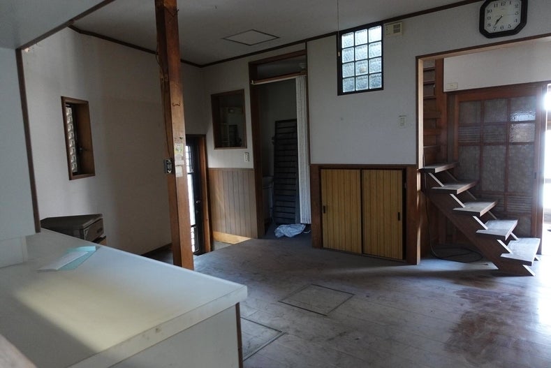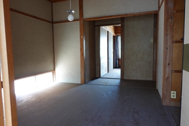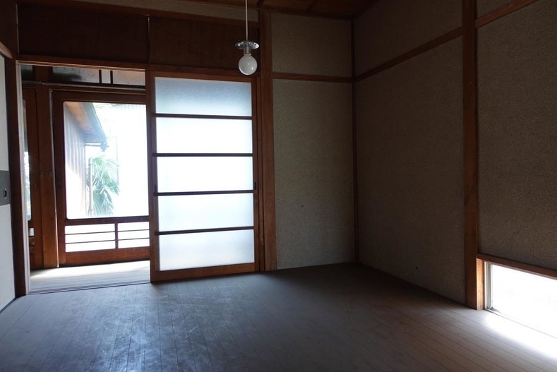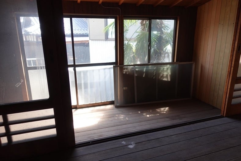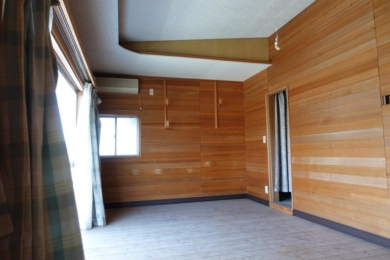 洋室に改装されていました。大工の棟梁だったお父さんとその息子さんが、一緒に実験しながら建てたのかなぁ、と思われる仮設の壁が残っていました。なんか素敵な思い出 ですが、こちらのお部屋はホワイトキューブに生まれ変わります!笑 ギャラリーのなかで眠る、をコンセプトにしています。