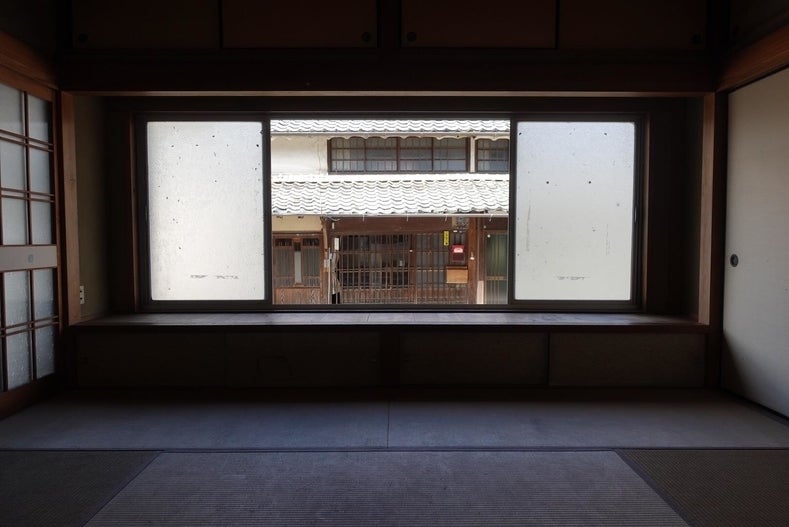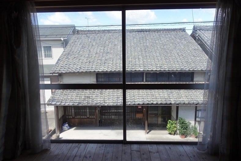 窓の向こうのおうちのすばらしいこと!築200年!江戸時代、この石部が宿場町として賑わっていた頃からこの場所を見守ってくださっています。これは借景というのでしょうか。ありがたいです。母・モモコは、向かいのおうちが大好きです。笑