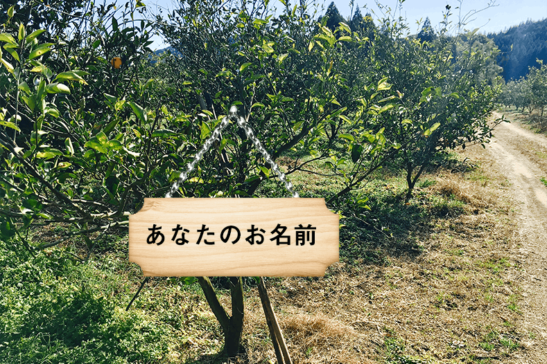 「へべす」苗木一口オーナー5年コース以上のご支援をお申込みいただいた方には、感謝の気持ちを込めて、苗木にお名前プレートを掲げます。