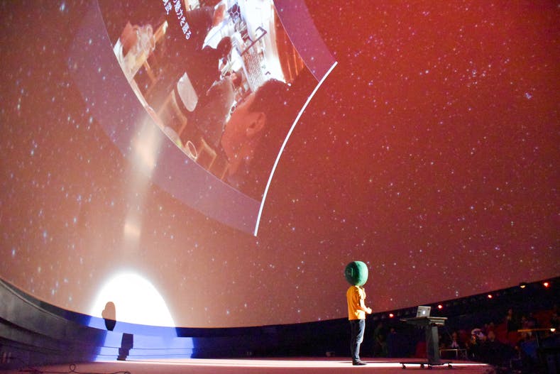 プラネタリウムにプレゼン資料を投映し、大スクリーンの前で、私の夢の話をさせていただきました。