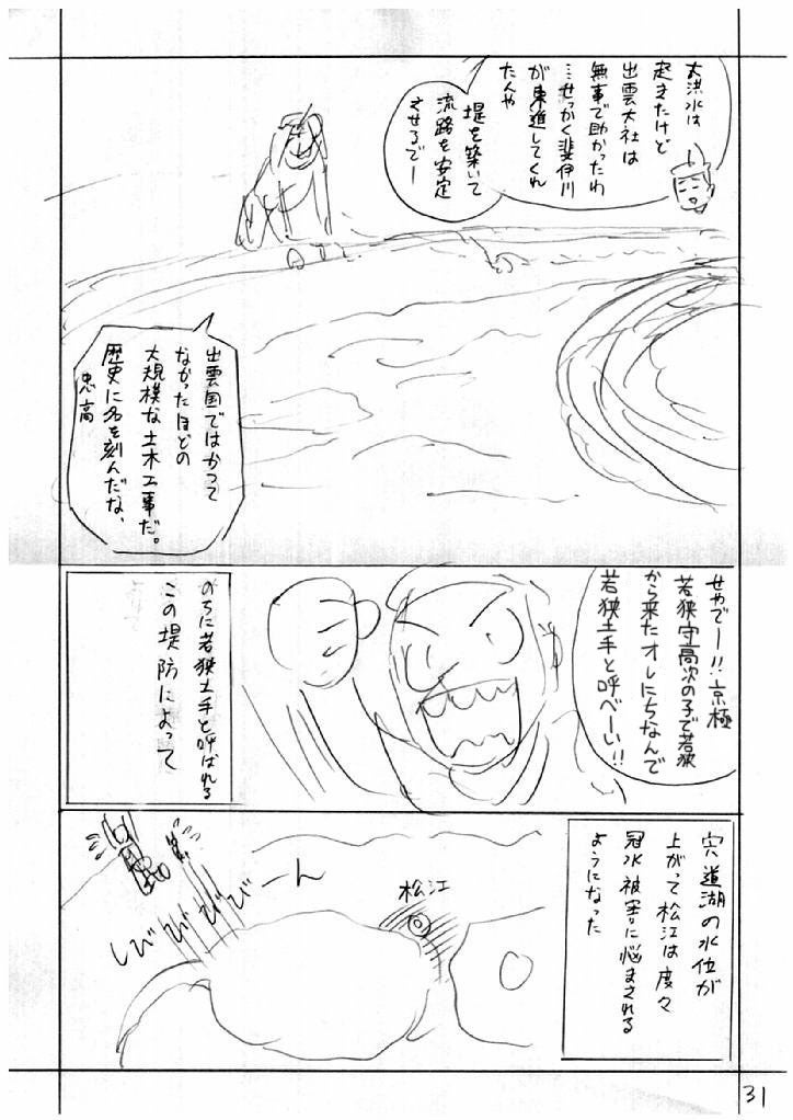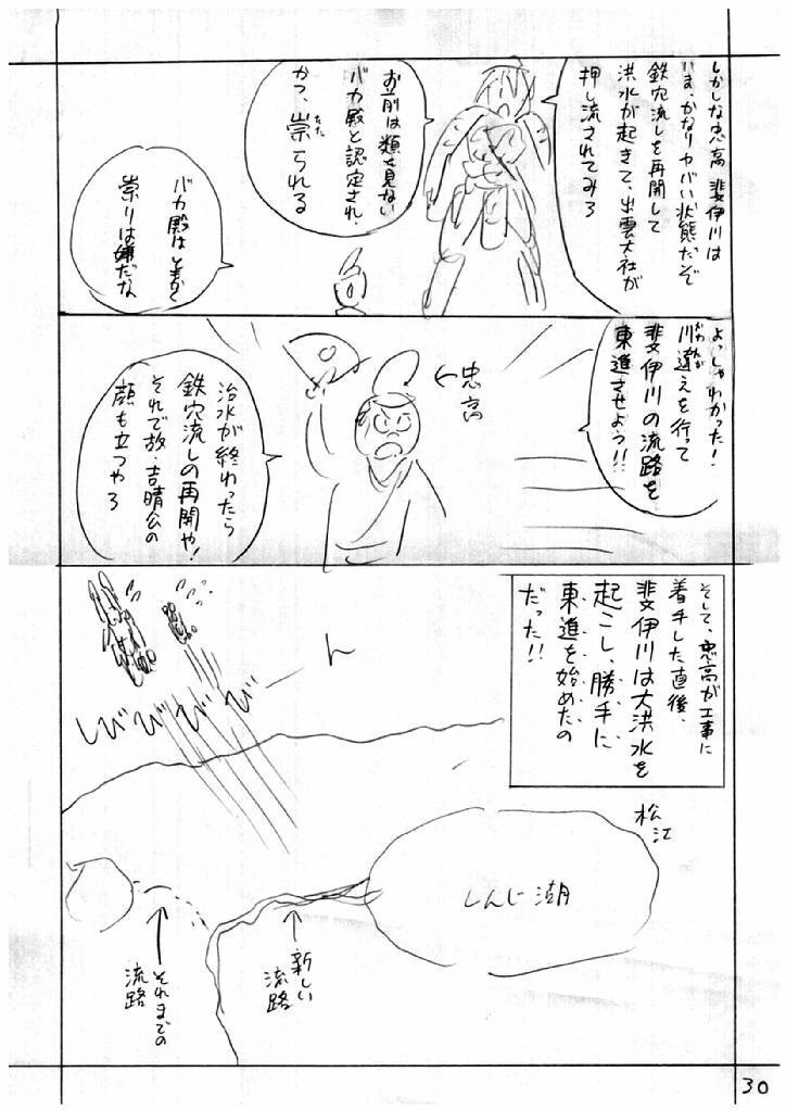 斐伊川は大洪水を起こし、勝手に東へ流路を変えけり。