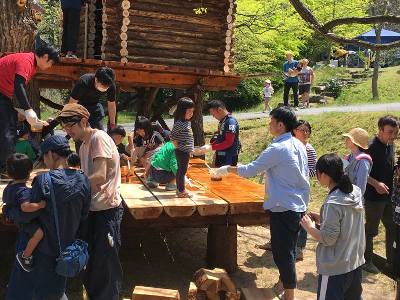 2017/05/06 18:49皆さん、連休はいかがお過ごしですか??ワークショップ連チャンの疲れを癒しつつあるコバヤシです。 ご報告が遅れましたが、4/30に塗装のワークショップを開催しましたのでお知らせします。当日は自然活動保育「じょいんとひろば」とのコラボレーション。総勢50名以上が集まって塗り塗りしました。 この日の最後には窓も開き(チェーンソーでガガガっとね)、もう遊べる仕様です! GWには早速子どもたちが遊んでくれていました。桃源郷はあくまでも川遊びがメインですが、バーベキューが終わって大人はのんびりビールを飲んでいるすぐ傍らで子どもたちがツリーハウスからシャボン玉を飛ばしている光景は、まさに思い描いていた絵そのものでした(T_T) 皆さんもぜひ遊びに来てくださいね! ちなみにツリーハウスプロジェクトはまだ続きます(*^_^*) もっと見る返礼品発送遅延のお詫び